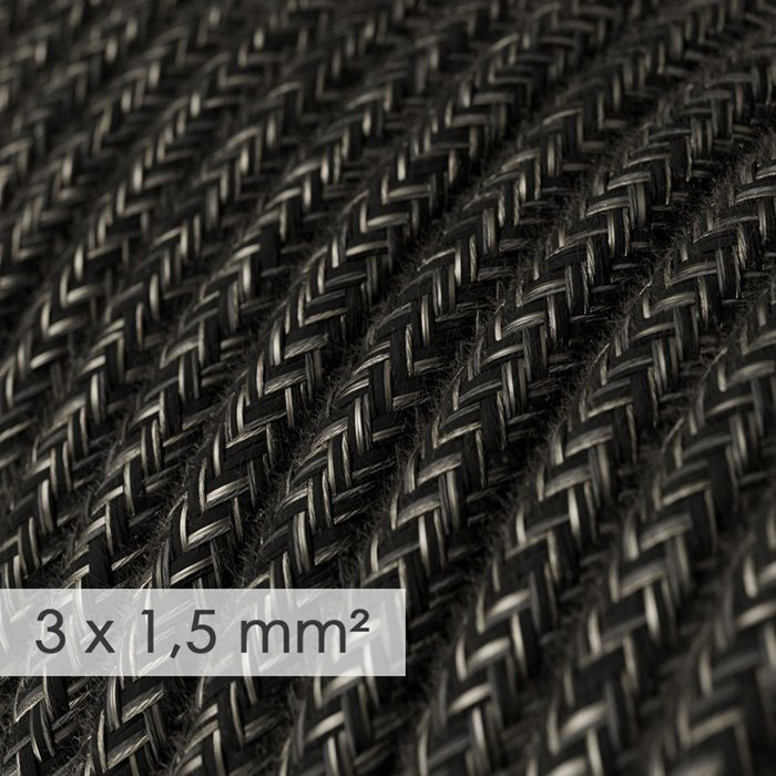 Anthrazitfarbenes Kabel mit Leinenstoff 3x1,5mm Melange RN03 | matt