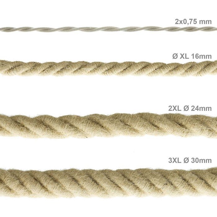 Einsatzmöglichkeiten gibt es gleich mehrere. Das Seilkabel mit einem Durchmesser von 24 mm ist ideal für das Renovieren von Leuchten, denen es eine neue, frische Optik verleiht, wie auch für die Schaffung origineller Lichtinstallationen mit einem persönlichen Charakter. Für eine 100%ige Produktkompatibilität bei der Fertigung oder Renovierung von Leuchten empfehlen wir eine Kombination mit Komponenten des Systems ROPE-24-2XL und entsprechendes #tablink#montaz#Montagezubehör##, das seine präzise und sichere Installation ermöglicht.