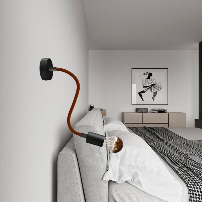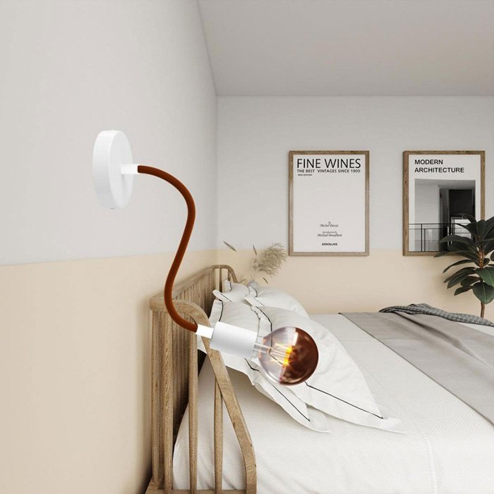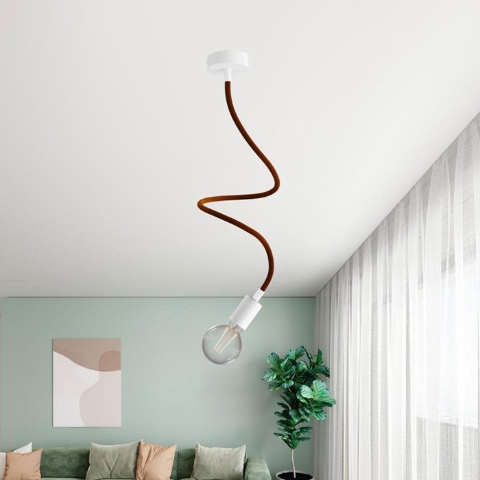 Der braune Schwanenhals für Lampen und kreative Lichtinstallationen Flex RM13 ist eine hervorragende Wahl für all jene, die originelle Leuchten schaffen oder mit verschiedenen Montagearten von Leuchten experimentieren wollen. Er ermöglicht ein Neigen, Schwenken und Verbiegen und ist an beiden Enden mit einer Gewindehülse M10 ausgestattet. Im Innern befindet sich bereits ein Kabel 2×0,75 mm², das an beiden Enden herausragt, was das Anschließen von Komponenten wie Kabelabdeckungen für Lampen oder Lampenfassungen vereinfacht.