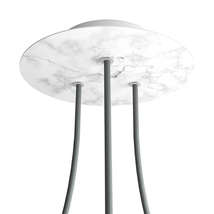 Die Deckenrosette mit drei Kabelausführungen für Leuchten (im unteren Teil) I3-Metalrose ist für Stromkabel mit einem Durchmesser von 5-7 mm bestimmt. Aus unserem Angebot können Sie Kabel und Komponenten des Systems COMPACT 62 wählen, mit denen Sie nahezu unbegrenzte Möglichkeiten für die individuelle Fertigung von Leuchten und die Schaffung kreativer Lichtlösungen erhalten.
