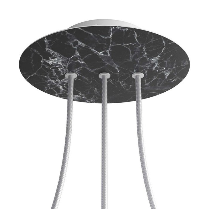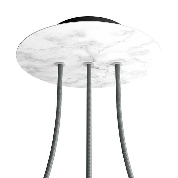 Die Deckenrosette mit drei Kabelausführungen in Reihe für Leuchten (im unteren Teil) II3-Metalrose ist für Stromkabel mit einem Durchmesser von 5-7 mm bestimmt. Aus unserem Angebot können Sie Kabel und Komponenten des Systems COMPACT 62 wählen, mit denen Sie nahezu unbegrenzte Möglichkeiten für die individuelle Fertigung von Leuchten und die Schaffung kreativer Lichtlösungen erhalten.