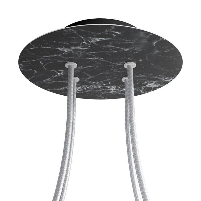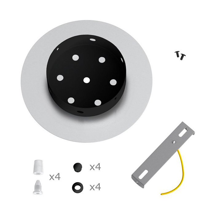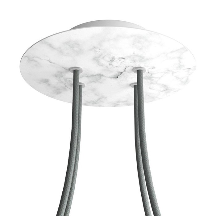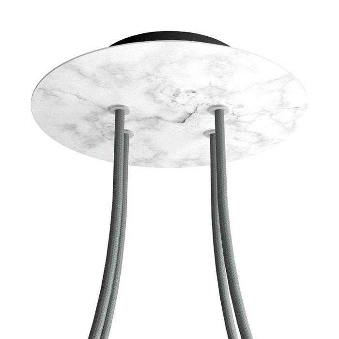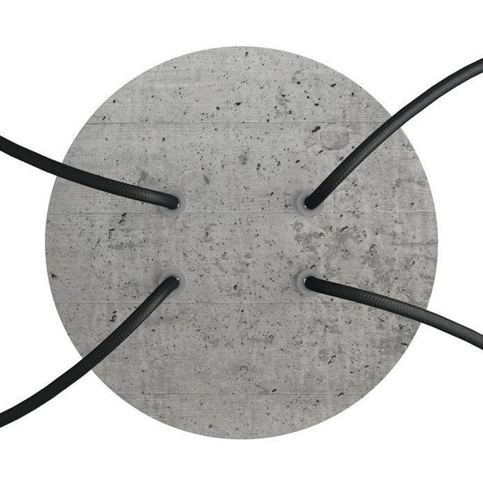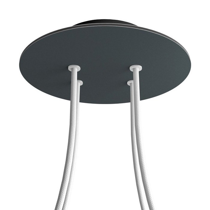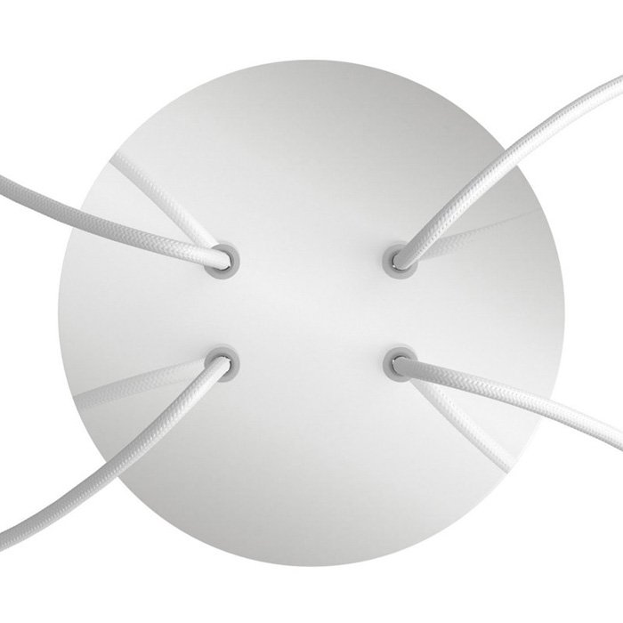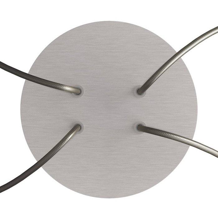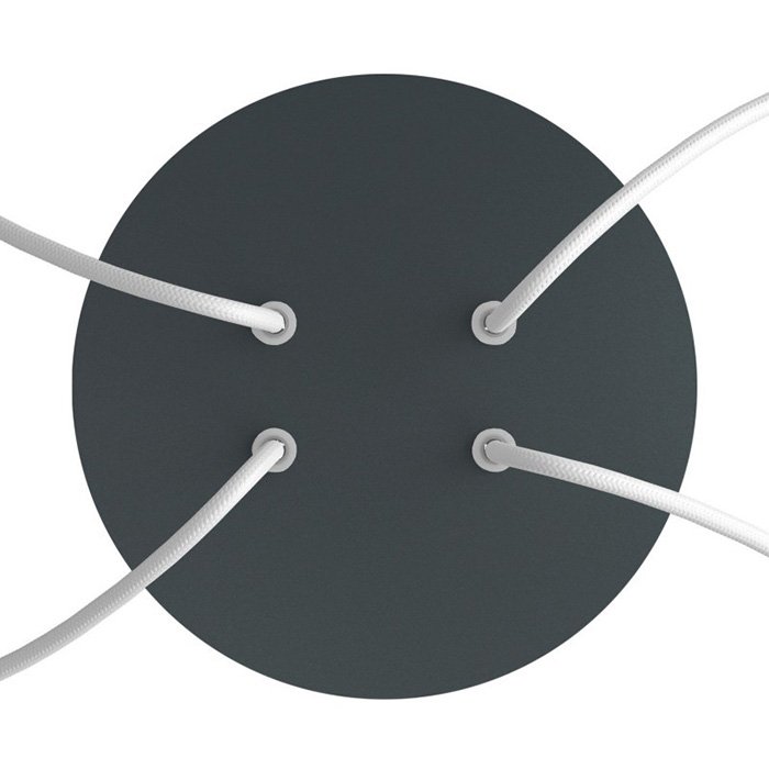 Die Deckenrosette mit vier Kabelausführungen für Leuchten (im unteren Teil) I4-Metalrose ist für Stromkabel mit einem Durchmesser von 5-7 mm bestimmt. Aus unserem Angebot können Sie Kabel und Komponenten des Systems COMPACT 62 wählen, mit denen Sie nahezu unbegrenzte Möglichkeiten für die individuelle Fertigung von Leuchten und die Schaffung kreativer Lichtlösungen erhalten.