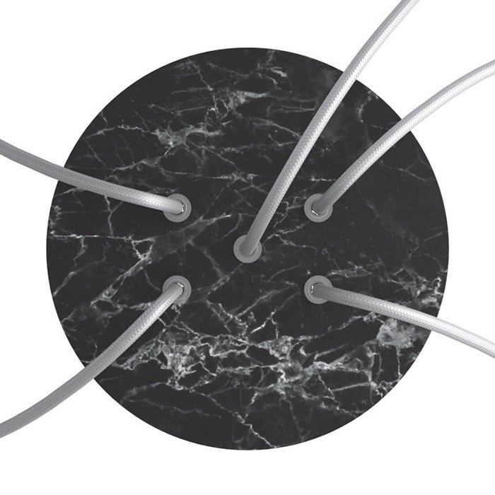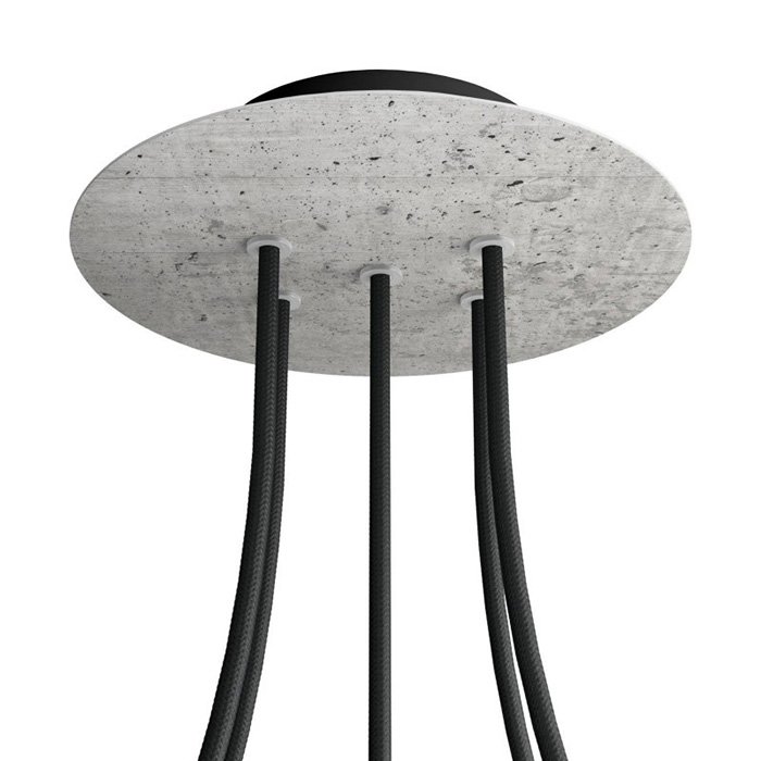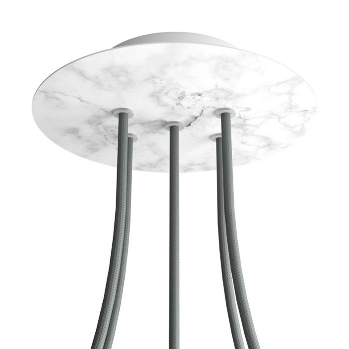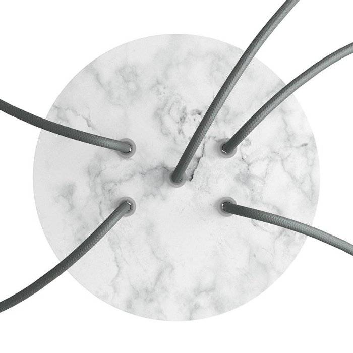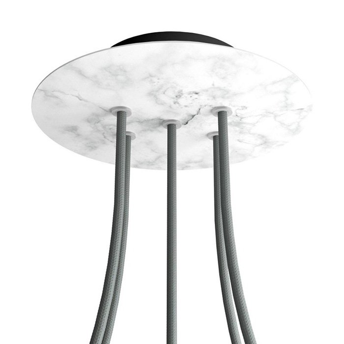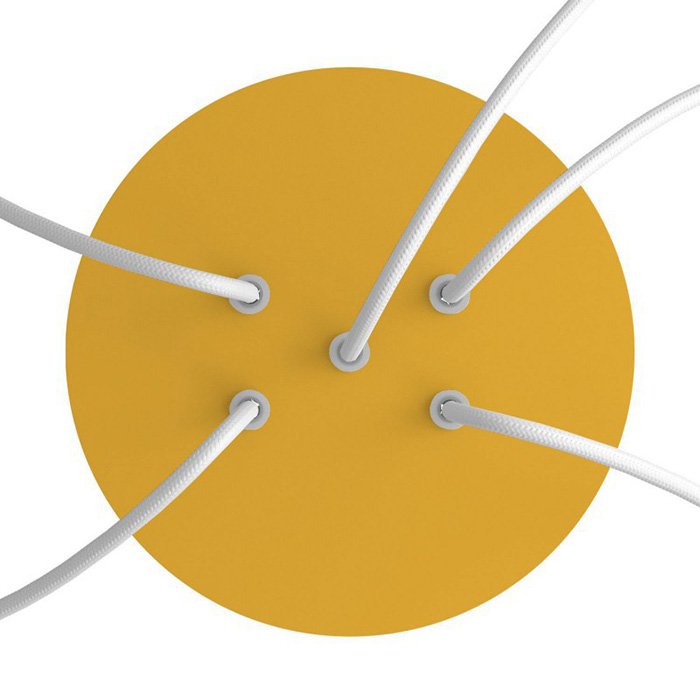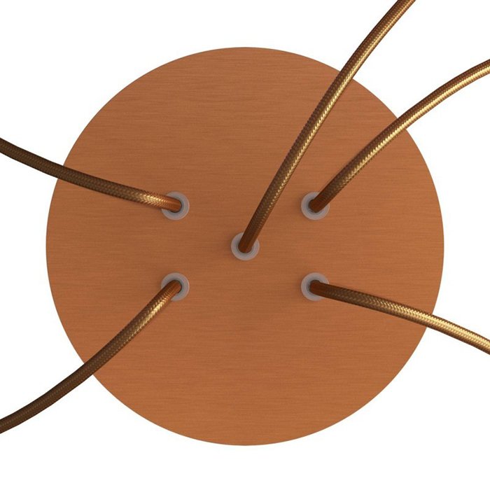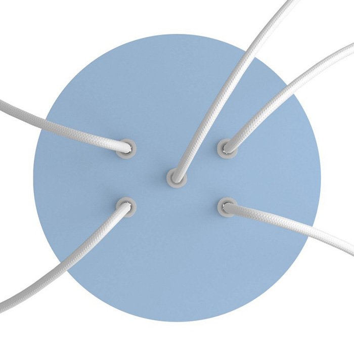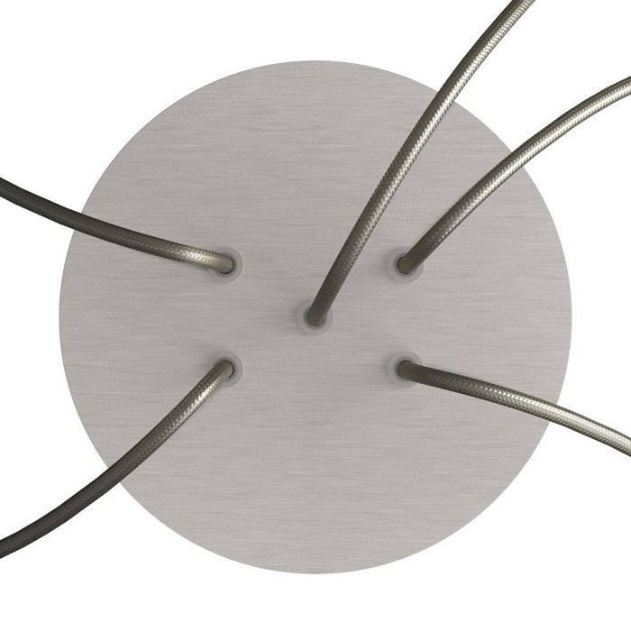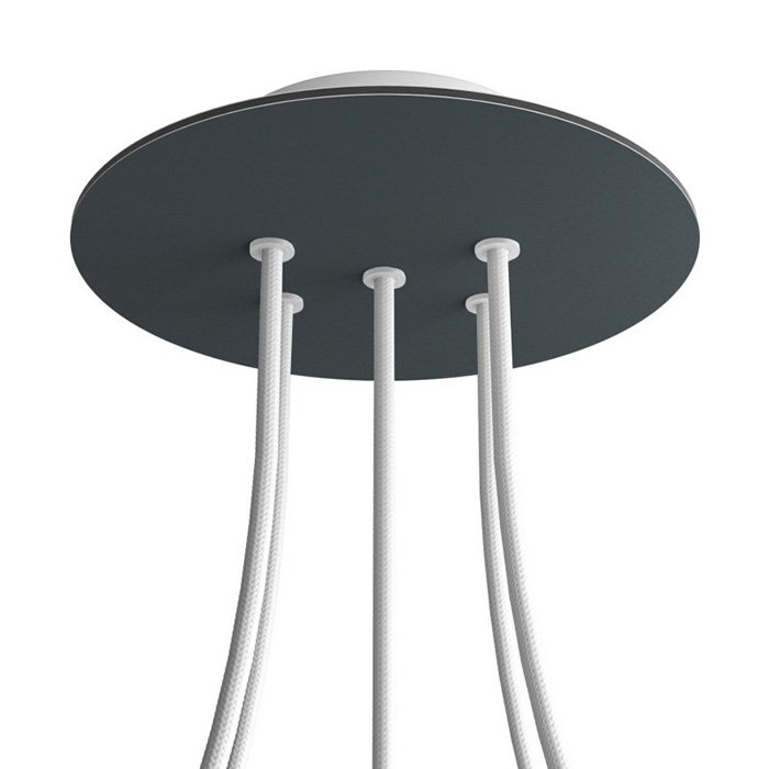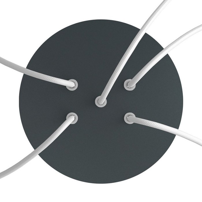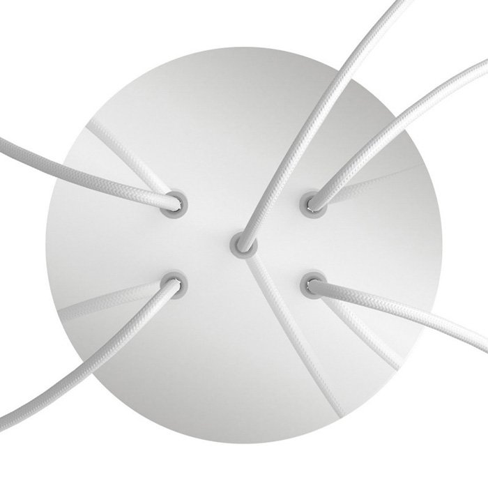 Die Deckenrosette mit fünf Kabelausführungen für Leuchten (im unteren Teil) I5-Metalrose ist für Stromkabel mit einem Durchmesser von 5-7 mm bestimmt. Aus unserem Angebot können Sie Kabel und Komponenten des Systems COMPACT 62 wählen, mit denen Sie nahezu unbegrenzte Möglichkeiten für die individuelle Fertigung von Leuchten und die Schaffung kreativer Lichtlösungen erhalten.