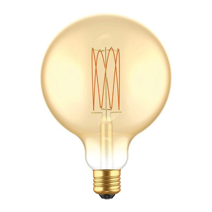 Die bernsteinfarbene dimmbare LED-Glühbirne mit E27 Gewinde aus der Kollektion Carbon Cage ist ein dekoratives Leuchtmittel zur Schaffung einer raffinierten Atmosphäre. Dank der dominanten, globusartigen Form G125 (Globe - an der breitesten Stelle Ø 125mm) harmoniert sie perfekt mit herkömmlichen Leuchten und verbindet klassisches Design mit moderner LED-Technologie in Gestalt eines präzise spiralförmig gewundenen und außerordentlich dünnen Filament-Glühfadens. Die präzise technische Verarbeitung und die renommierte Qualität der Marke DayLight garantieren eine hohe Effizienz, erstklassige Lichtparameter und einen zuverlässigen Komfort beim täglichen Gebrauch.