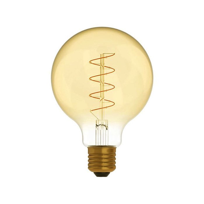 Die bernsteinfarbene dimmbare LED-Glühbirne mit E27 Gewinde aus der Kollektion Carbon Spiral ist ein dekoratives Leuchtmittel zur Schaffung einer raffinierten Atmosphäre. Dank der runden, globusartigen Form G95 (Globe - an der breitesten Stelle Ø 95mm) harmoniert sie perfekt mit herkömmlichen Leuchten und verbindet klassisches Design mit moderner LED-Technologie in Gestalt eines präzise spiralförmig gewundenen und außerordentlich dünnen Filament-Glühfadens. Die präzise technische Verarbeitung und die renommierte Qualität der Marke DayLight garantieren eine hohe Effizienz, erstklassige Lichtparameter und einen zuverlässigen Komfort beim täglichen Gebrauch.
