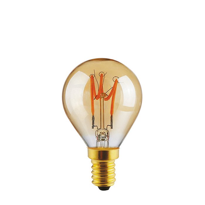 Die bernsteinfarbene dimmbare LED-Glühbirne E27 aus der Kollektion Sfera Filament ist ein energiesparendes Leuchtmittel mit einer langen Lebensdauer. Dank der stilvollen Birnenform P45 (Drop - an der breitesten Stelle Ø 45mm) harmoniert sie perfekt mit herkömmlichen Leuchten und verbindet klassisches Design mit moderner LED-Technologie in Gestalt eines horizontal spiralförmig gewundenen Filament-Glühfadens. Die erstklassige technische Verarbeitung und die renommierte Qualität der Marke DayLight garantieren erstklassige Leuchteigenschaften, eine hohe Effizienz und maximale Zufriedenheit beim täglichen Gebrauch.