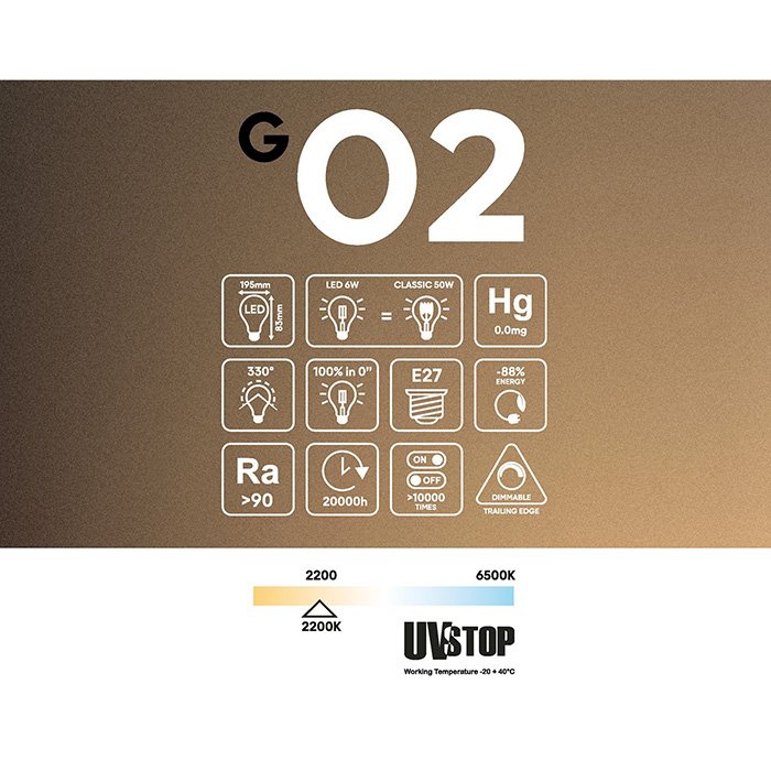 Dimmbare LED-Glühbirne E27 klar G02 BeBulbs-G | 6W | CRI90