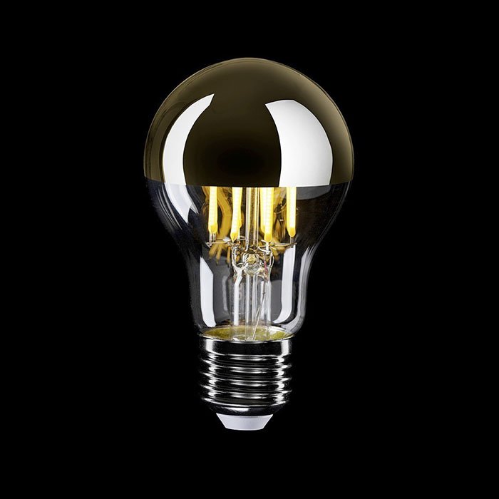Der klare Glaskolben sorgt für klares und intensives Licht, während der goldfarbene Kopf einen Teil des Lichts zurück in die Leuchte reflektiert. Dadurch reduziert er die Blendung und lenkt das Licht vorwiegend nach unten. Die Spiegeloberfläche verleiht der Glühbirne eine elegante moderne Optik und einen luxuriösen Charakter. Dieses Design sorgt für folgende Lichteigenschaften: