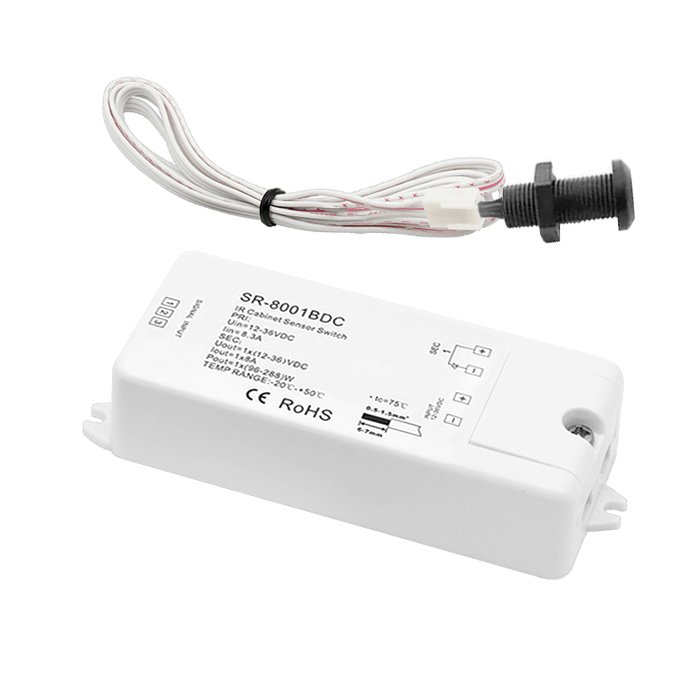 Der Möbel- und Schranktürschalter mit der Produktbezeichnung SR-8001B-DC ist eine äußerst komfortable und effektive Lösung für die automatische Steuerung von LED-Streifen und weiteren Niederspannungsgeräten, die in Möbelkonstruktionen integriert sind. Seine berührungslose Infrarot-Detektion eines Hindernisses ermöglicht einen voll autonomen Betrieb - durch das Öffnen von Türen oder Herausziehen von Schubfächern kommt es zu einer sofortigen Aktivierung des Outputs und zum Einschalten einer Beleuchtung. Nach erneutem Schließen des Möbelelements erkennt der Sensor die Rückkehr des Hindernisses und das System trennt die Stromversorgung automatisch und das Licht erlischt. Der SR-8001B-DC zeichnet sich durch Zuverlässigkeit und eine hohe Verarbeitungsqualität aus, hinter der die renommierte Marke Lux Miners by Sunricher steht.