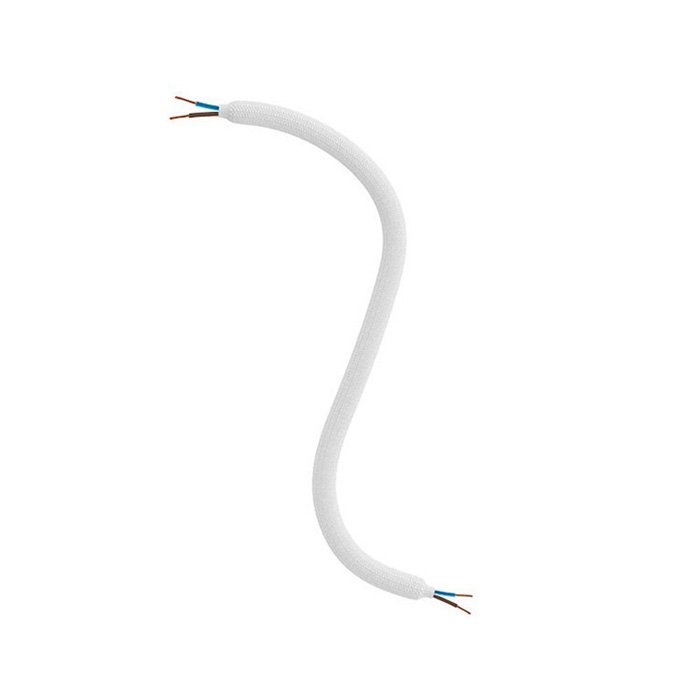 Flexibilní husí krk s vodičem a lesklým bílým opletem RM01 z umělého hedvábí je mimořádným produktem systému Creative Flex, který dokáže sestavování a výrobu svítidel posunout na novou úroveň. Srdcem produktu je robustní a kvalitně zpracovaný kovový husí krk v jehož dutině je skryt vodič 2x 0,75mm. Elektrický vodič slouží pro vedení napájení 230V a umožňuje sestavování osvětlovacích systémů třídy II. Možnost individualizace a vzájemná kompatibilita s dalšími komponenty k výrobě svítidel z naší nabídky dělá ze systému Creative Flex naprosto jedinečný produkt.