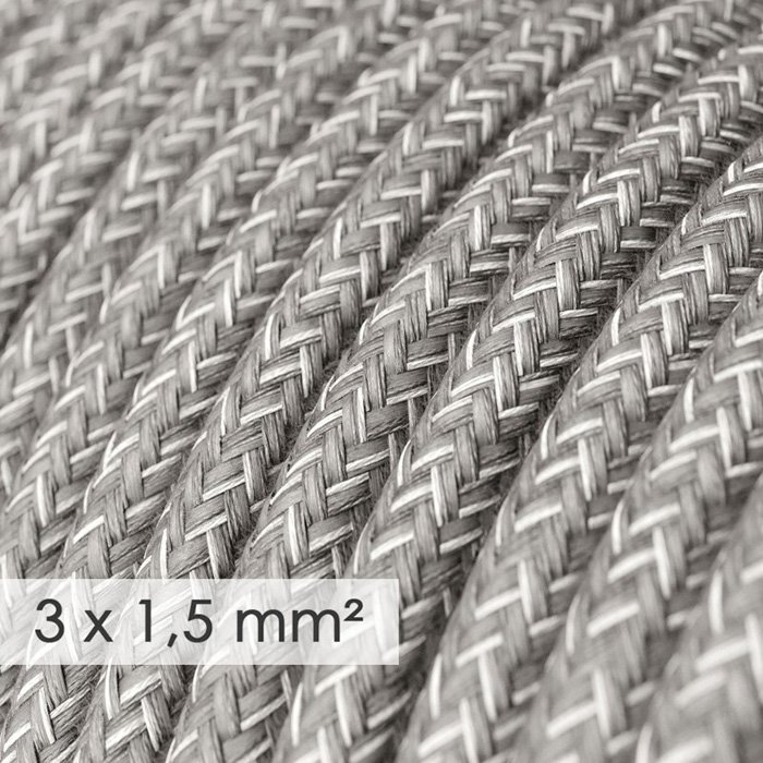 Graues Kabel mit Leinenstoff 3x1,5mm Melange RN02 | matt