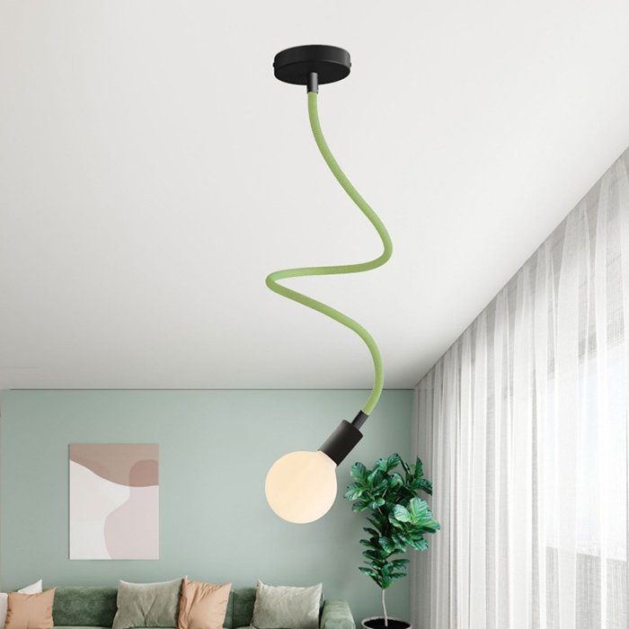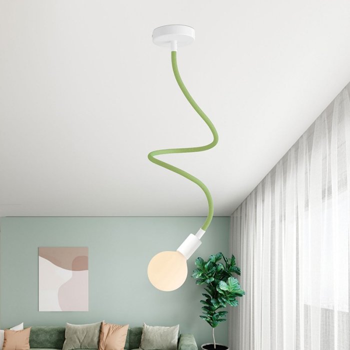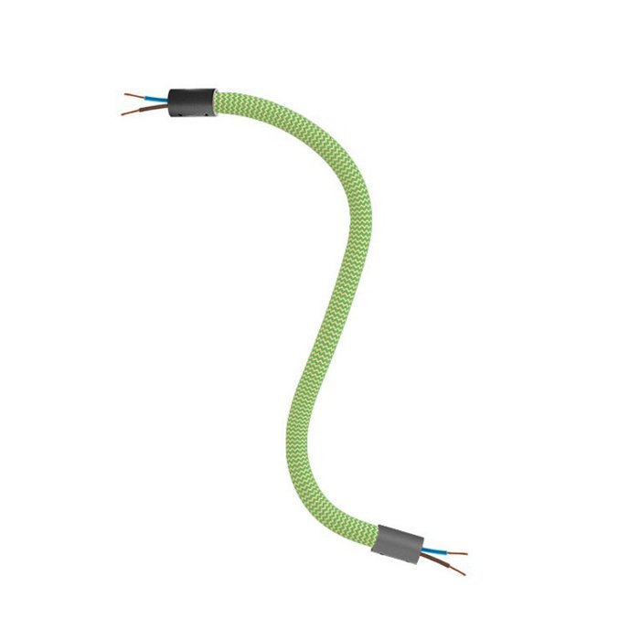 Der grüne Schwanenhals für Lampen und kreative Lichtinstallationen Flex RM77 ist eine hervorragende Wahl für all jene, die originelle Leuchten schaffen oder mit verschiedenen Montagearten von Leuchten experimentieren wollen. Er ermöglicht ein Neigen, Schwenken und Verbiegen und ist an beiden Enden mit einer Gewindehülse M10 ausgestattet. Im Innern befindet sich bereits ein Kabel 2×0,75 mm², das an beiden Enden herausragt, was das Anschließen von Komponenten wie Kabelabdeckungen für Lampen oder Lampenfassungen vereinfacht.