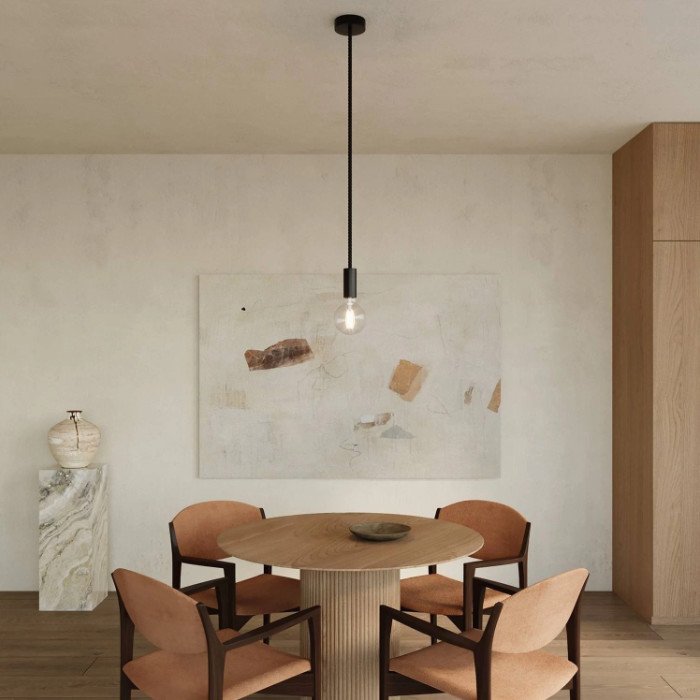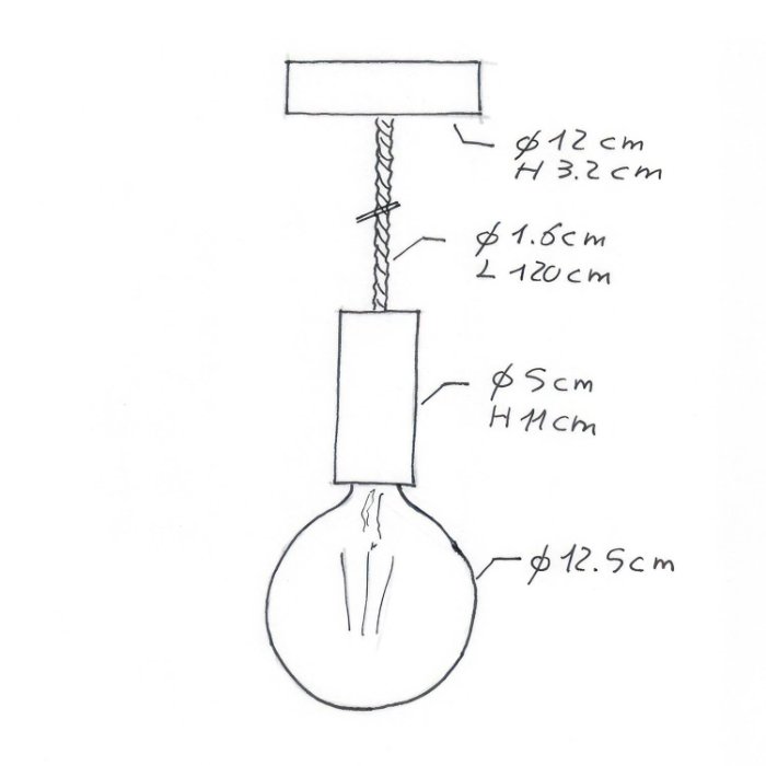- Stoffkabel 3x0,75 mm mit einer Länge von ≈ 1,2 m und Ø 16 mm - in geflochtener Ausführung, die perfekt mit den übrigen Komponenten harmoniert. Die Länge kann ganz einfach durch Kürzen entsprechend den Bedürfnissen des Raums angepasst werden.