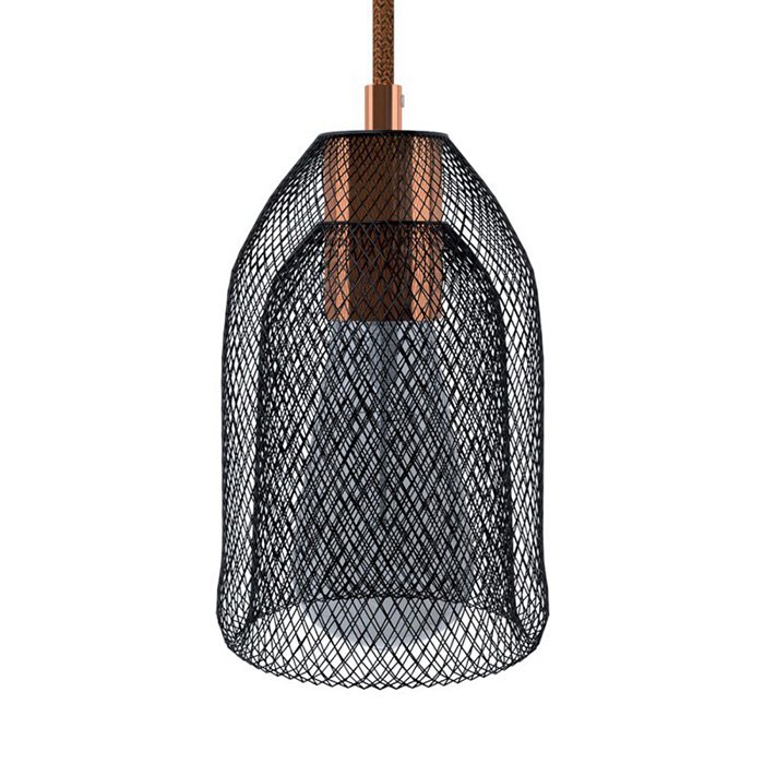 Einsatzmöglichkeiten gibt es gleich mehrere. Sie können den Lampenschirm aus Drahtgeflecht Ghostbell-XS zum Renovieren einer bestehenden Lampe verwenden und dieser eine neue Optik verleihen, oder ihn zu Schaffung einer völlig originellen und personalisierten Lichtlösung verwenden. Wählen können Sie auch aus unserer #tablink#svitidla#Kollektion von Leuchten##, deren Bestandteil dieser Lampenschirm ist. Geliefert wird der Käfig-Lampenschirm mit einer E27 Lampenfassung, einer Kabeldurchführung und einer Kabelklemme, sodass lediglich ein Anschlusskabel und eine Glühbirne zu ergänzen sind und fertig ist ein einzigartiges Lichtelement für Ihr Interieur.