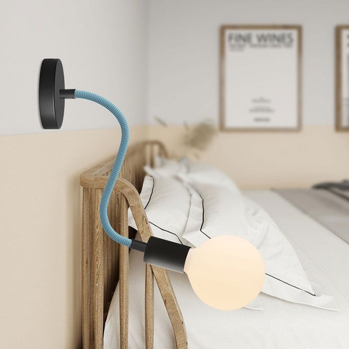 O dokonalý vizuální zážitek se stará látkový oplet v modré barvě Petrol Blue RM78, který je vyroben z umělého hedvábí. Hedvábný oplet flexibilní trubice je typický svým hladkým, někdy až lesklým povrchem a výraznými barvami. Hedvábí je vzhledově atraktivní a perfektně se hodí pro instalace jak v domácím prostředí, tak i uvnitř komerčních prostor.