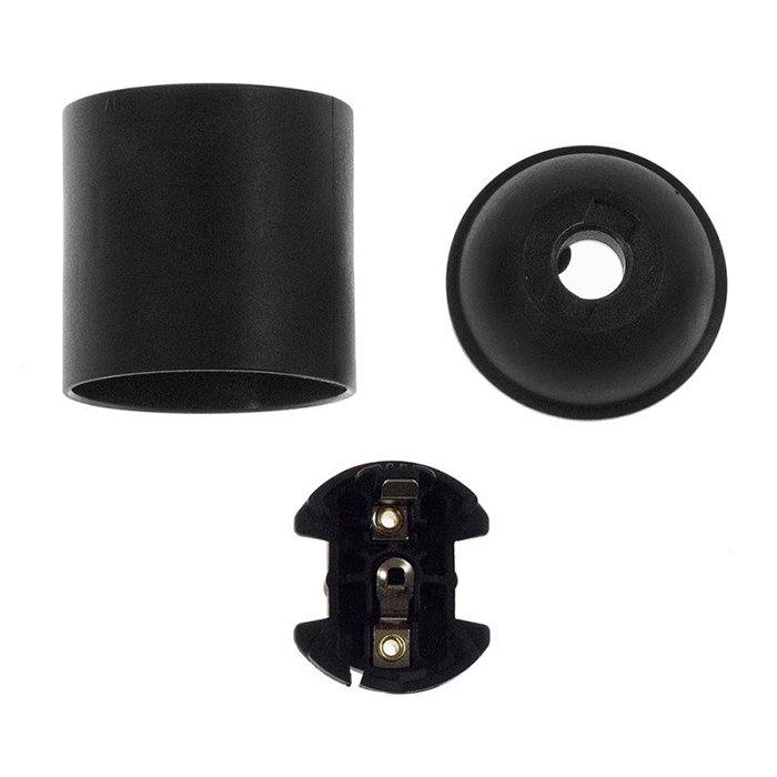 Die E27 Fassung Kunststoff Plastina besteht aus mehreren, präzise verarbeiteten Teilen, die genau zueinander passen und ein kompaktes, funktionales Ganzes bilden. Sie setzt sich aus dem äußeren Gehäuse (dem dekorativen Mantel) und einem inneren Modul mit Kontakten für das Anschließen von Leitern zusammen:
