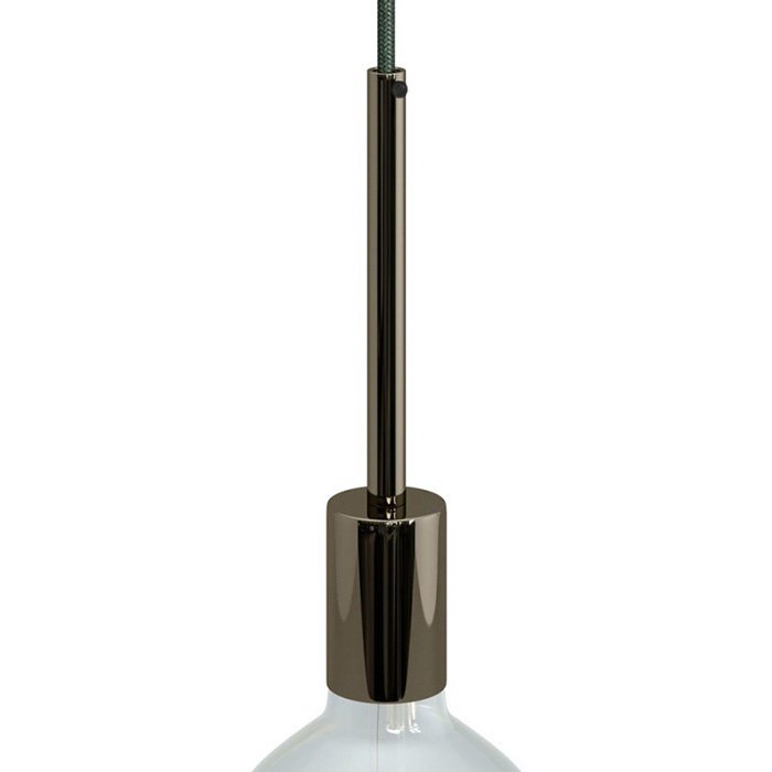 Die Lampenfassung Metall E27 mit der Produktbezeichnung Metala-15 kombiniert eine zuverlässige Funktion und eine stilvolle ästhetische Verarbeitung. Sie bietet breite Möglichkeiten für das Entwerfen, die Fertigung oder Renovierung von Leuchten. Verwendet werden kann sie für Pendelleuchten, Wandinstallationen oder als Teil komplizierterer Leuchtengruppen. Die 15 cm lange, zylinderförmige Kabeldurchführung ist ein Designelement, das die Gesamtoptik der Leuchte verbessert. Nutzen Sie die Metallfassung Metala-15 für E27 Glühbirnen mit großem Gewinde als minimalistische Lösung insbesondere dort, wo die Glühbirne das Hauptdesignelement darstellt.