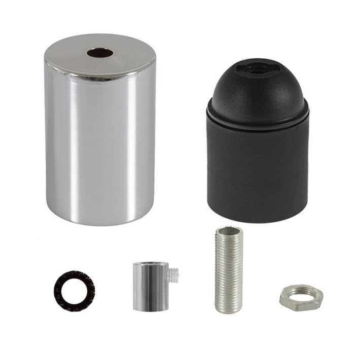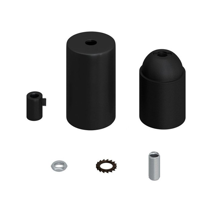 Die Metallfassung E27 Metala besteht aus mehreren, präzise verarbeiteten Teilen, die genau zueinander passen und ein kompaktes, funktionales Ganzes bilden. Sie setzt sich aus dem äußeren Gehäuse (dem dekorativen Mantel) und der eigentlichen, zum Halten einer Glühbirne bestimmten funktionalen Fassung zusammen:
