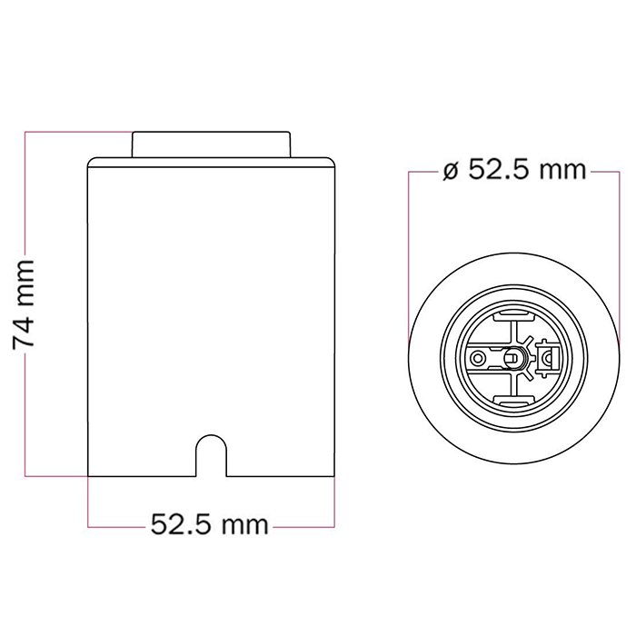 | Abmessung der Fassung (⌀/H): | 52,2 mm x 74 mm |