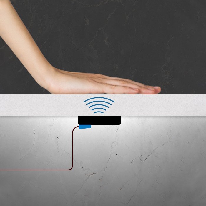 - Sensibler kapazitiver Sensor mit einer Reichweite von bis zu 7 cm - funktioniert durch Holz, MDF-Platten, Stein, Glas oder Gipskarton.