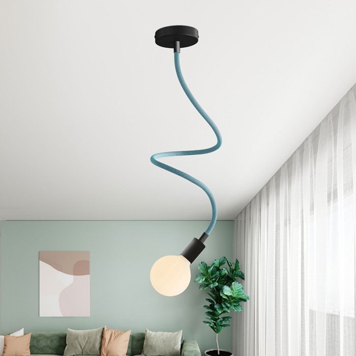 Der petrolblaue Schwanenhals für Lampen und kreative Lichtinstallationen Flex RM78 ist eine hervorragende Wahl für all jene, die originelle Leuchten schaffen oder mit verschiedenen Montagearten von Leuchten experimentieren wollen. Er ermöglicht ein Neigen, Schwenken und Verbiegen und ist an beiden Enden mit einer Gewindehülse M10 ausgestattet. Im Innern befindet sich bereits ein Kabel 2×0,75 mm², das an beiden Enden herausragt, was das Anschließen von Komponenten wie Kabelabdeckungen für Lampen oder Lampenfassungen vereinfacht.