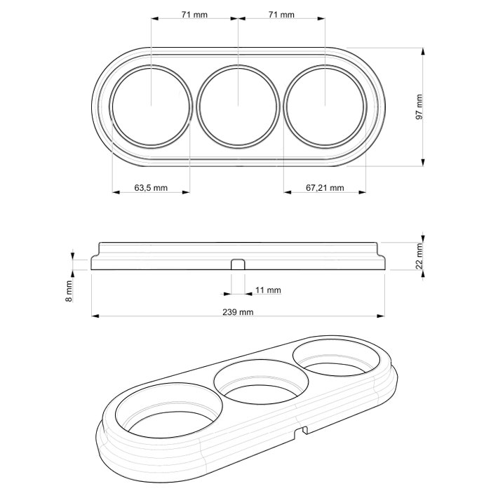 Der Porzellan-Dreifachrahmen 3P-Frame ist ein praktisches Montageelement, das den Anschluss von Zuleitungskabeln aus einer Richtung ermöglicht. Dank der durchdachten Konstruktion ermöglicht er eine elegante Kabelführung, wobei alle Elektroverbindungen sicher und diskret unter dem Rahmen verborgen bleiben.