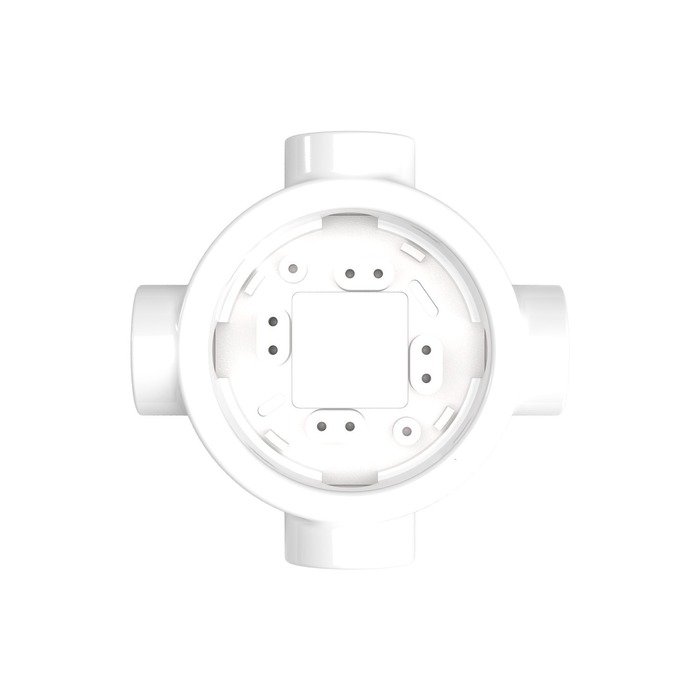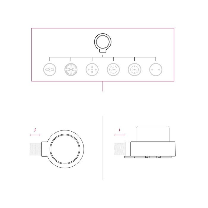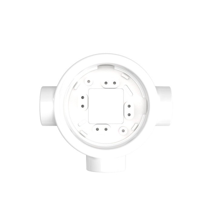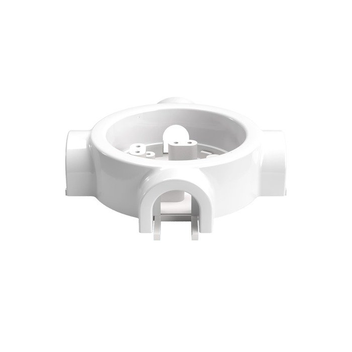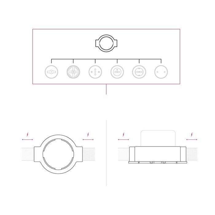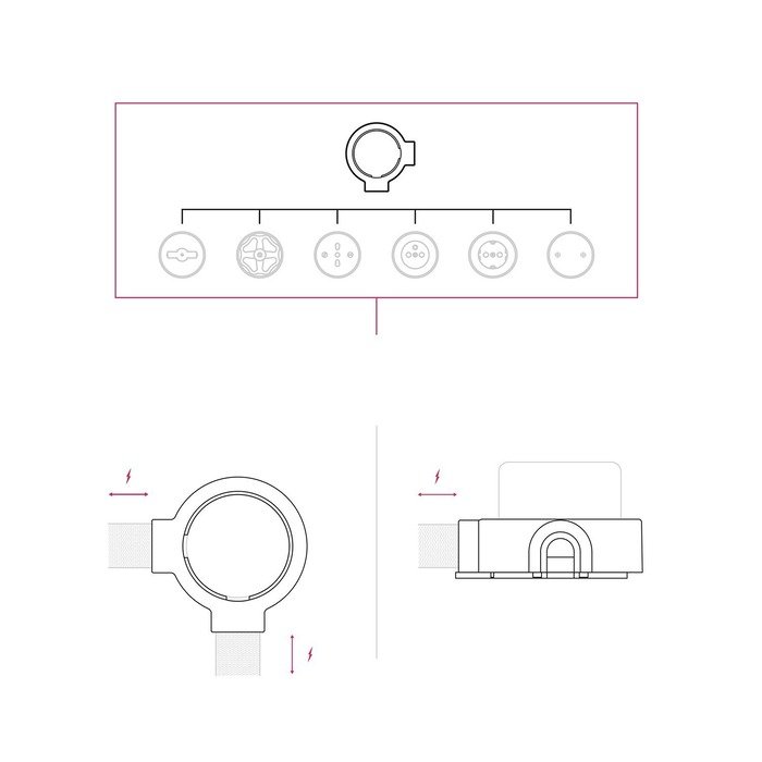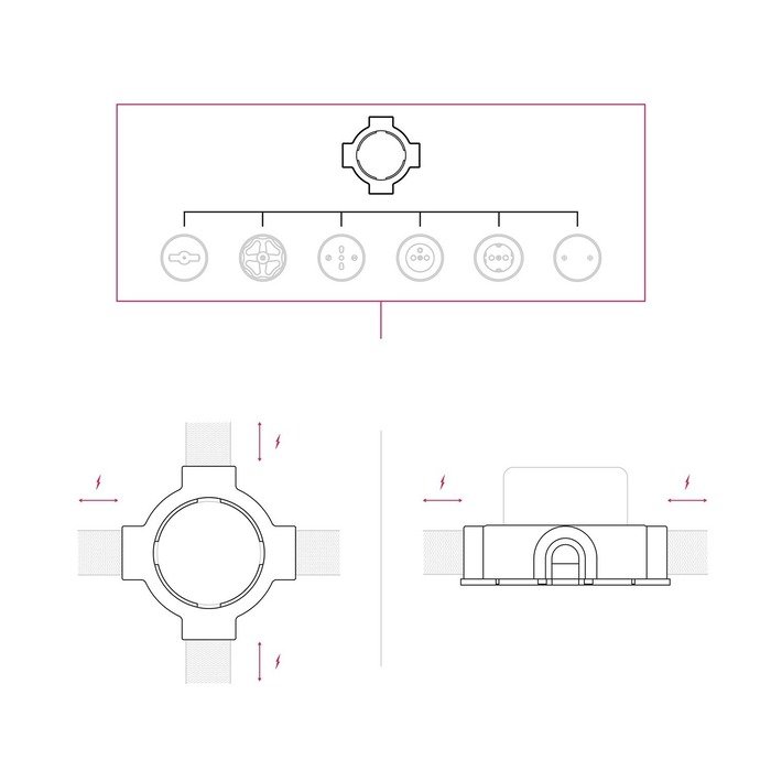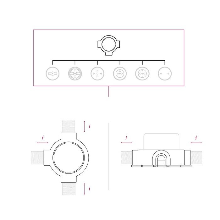 Der Porzellanrahmen P-Frame ist ein praktisches Montageelement, das den Anschluss von Kabelschläuchen einer Aufputz-Installation Creative-Tube aus bis zu vier Richtungen (je nach gewählter Produktvariante) erleichtert. Dank der durchdachten Konstruktion ermöglicht er eine elegante Aufputzführung von Kabeln, wobei alle Elektroverbindungen sicher und diskret unter dem Rahmen verborgen bleiben.