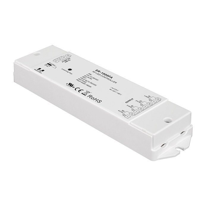 Der 4-Kanal RF-Controller für LED-Streifen mit der Produktbezeichnung SR-1009FA ist ein erstklassiges elektronisches Gerät zum Steuern von einfarbigen, CCT, RGB oder RGBW LED-Streifen. Er bietet die Funktionen Ein-/Ausschalten, stufenloses Dimmen sowie Steuerung der Farben (RGB, RGBW) und der Farbtemperatur (CCT), die drahtlos mittels eines Funksignals gesteuert werden können. Der RF-Controller für LED-Streifen SR-1009FA zeichnet sich durch Zuverlässigkeit und eine hohe Verarbeitungsqualität aus, hinter der die renommierte Marke Lux Miners by Sunricher steht.
