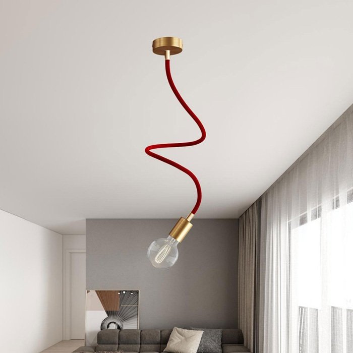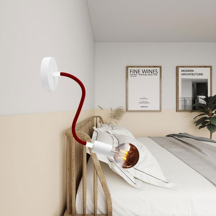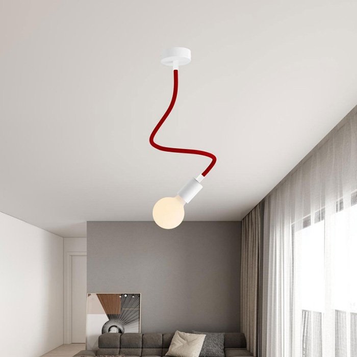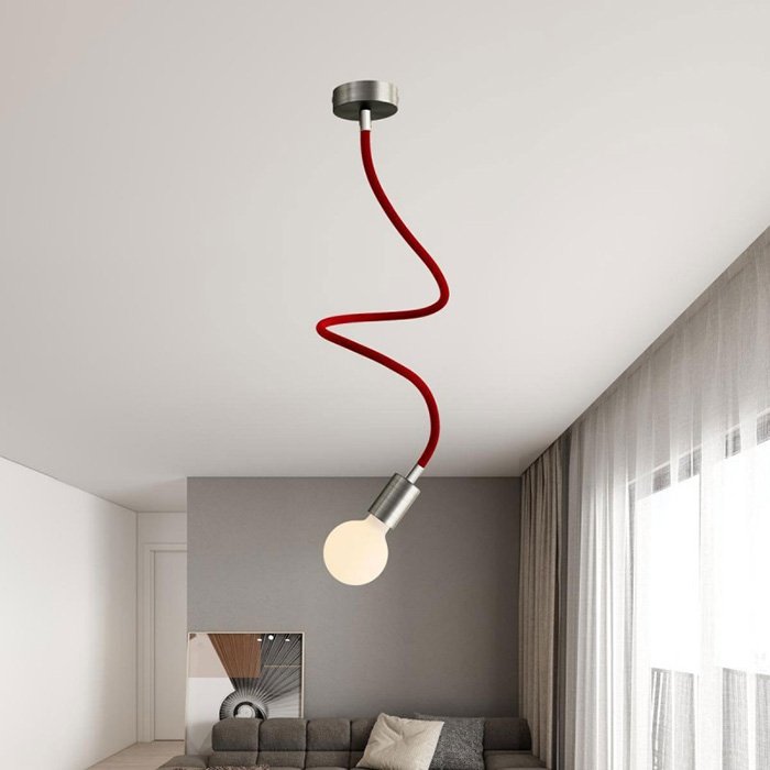 Der rote Schwanenhals für Lampen und kreative Lichtinstallationen Flex RM09 ist eine hervorragende Wahl für all jene, die originelle Leuchten schaffen oder mit verschiedenen Montagearten von Leuchten experimentieren wollen. Er ermöglicht ein Neigen, Schwenken und Verbiegen und ist an beiden Enden mit einer Gewindehülse M10 ausgestattet. Im Innern befindet sich bereits ein Kabel 2×0,75 mm², das an beiden Enden herausragt, was das Anschließen von Komponenten wie Kabelabdeckungen für Lampen oder Lampenfassungen vereinfacht.