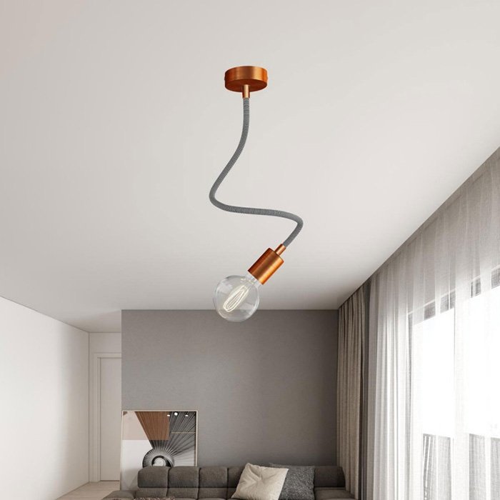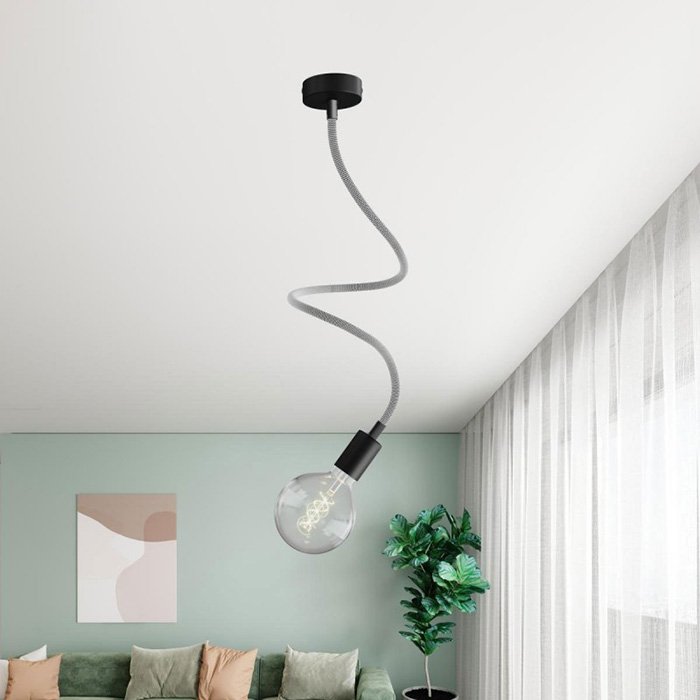 Der schwarz-weiße Schwanenhals für Lampen und kreative Lichtinstallationen Flex RZ04 ist eine hervorragende Wahl für all jene, die originelle Leuchten schaffen oder mit verschiedenen Montagearten von Leuchten experimentieren wollen. Er ermöglicht ein Neigen, Schwenken und Verbiegen und ist an beiden Enden mit einer Gewindehülse M10 ausgestattet. Im Innern befindet sich bereits ein Kabel 2×0,75 mm², das an beiden Enden herausragt, was das Anschließen von Komponenten wie Kabelabdeckungen für Lampen oder Lampenfassungen vereinfacht.