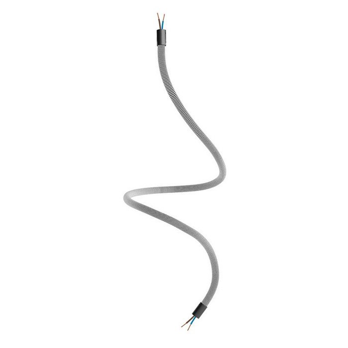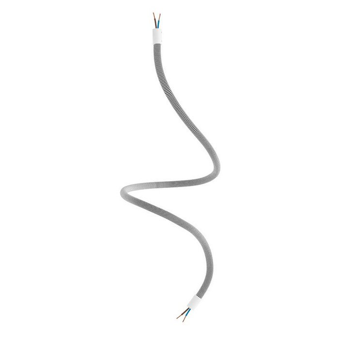 Die Oberflächenummantelung mit schwarz-weißem Zick-Zack-Muster aus Rayon (Viskose) verleiht dem Metallschlauch mit robuster Mechanik eine außergewöhnliche Optik, dank der er nicht nur zu einem funktionalen, sondern auch zu einem ästhetischen Element des Interieurs wird.