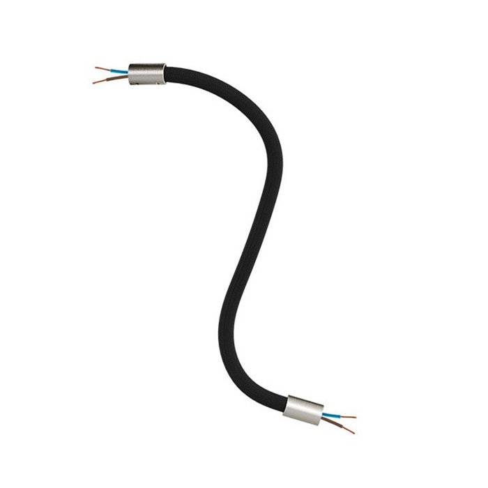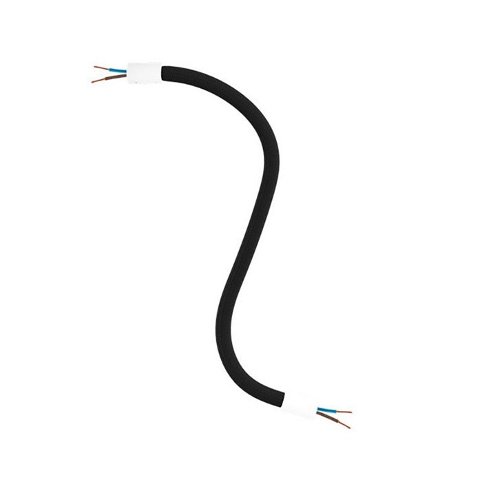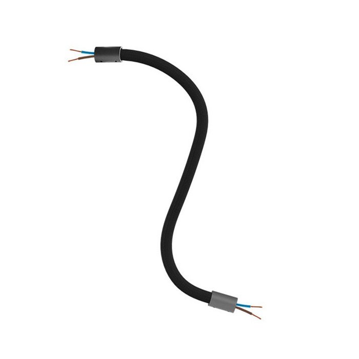 Der schwarze Schwanenhals für Lampen und kreative Lichtinstallationen Flex RM04 ist eine hervorragende Wahl für all jene, die originelle Leuchten schaffen oder mit verschiedenen Montagearten von Leuchten experimentieren wollen. Er ermöglicht ein Neigen, Schwenken und Verbiegen und ist an beiden Enden mit einer Gewindehülse M10 ausgestattet. Im Innern befindet sich bereits ein Kabel 2×0,75 mm², das an beiden Enden herausragt, was das Anschließen von Komponenten wie Kabelabdeckungen für Lampen oder Lampenfassungen vereinfacht.