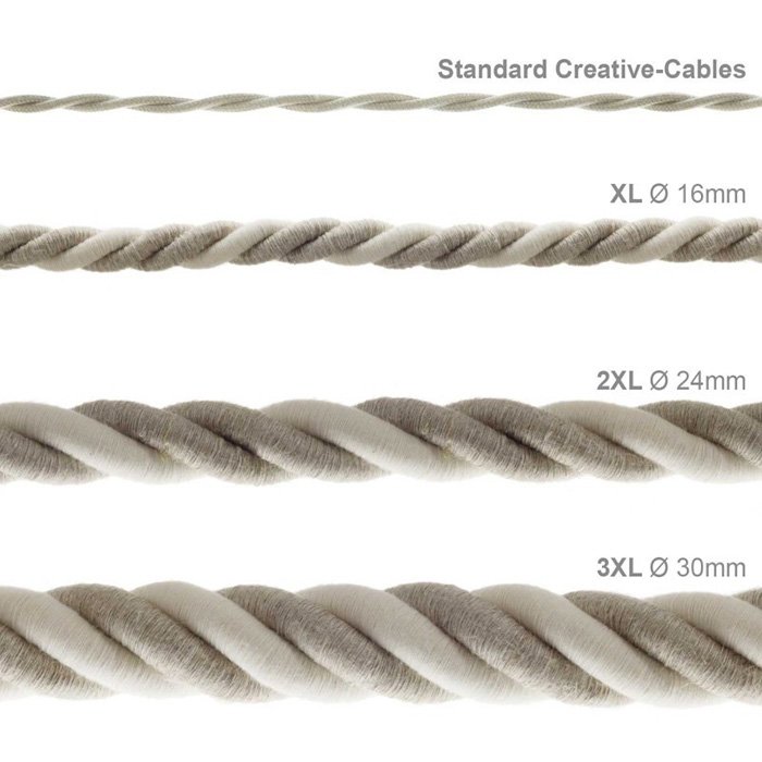 Einsatzmöglichkeiten gibt es gleich mehrere. Das Seilkabel mit einem Durchmesser von 24 mm ist ideal für das Renovieren von Leuchten, denen es eine neue, frische Optik verleiht, wie auch für die Schaffung origineller Lichtinstallationen mit einem persönlichen Charakter. Für eine 100%ige Produktkompatibilität bei der Fertigung oder Renovierung von Leuchten empfehlen wir eine Kombination mit Komponenten des Systems ROPE-24-2XL und entsprechendes #tablink#montaz#Montagezubehör##, das seine präzise und sichere Installation ermöglicht.