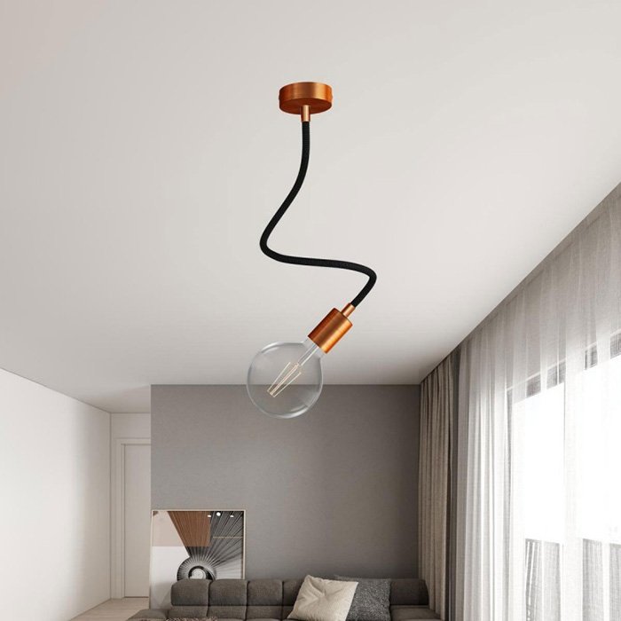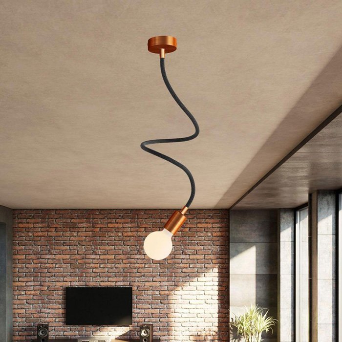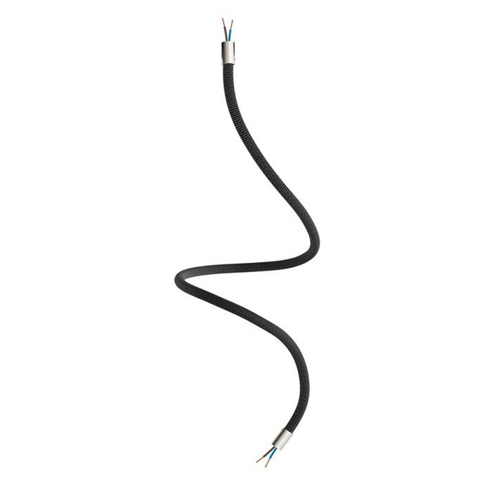 Der stahlgrau-schwarzße Schwanenhals für Lampen und kreative Lichtinstallationen Flex RZ30 ist eine hervorragende Wahl für all jene, die originelle Leuchten schaffen oder mit verschiedenen Montagearten von Leuchten experimentieren wollen. Er ermöglicht ein Neigen, Schwenken und Verbiegen und ist an beiden Enden mit einer Gewindehülse M10 ausgestattet. Im Innern befindet sich bereits ein Kabel 2×0,75 mm², das an beiden Enden herausragt, was das Anschließen von Komponenten wie Kabelabdeckungen für Lampen oder Lampenfassungen vereinfacht.