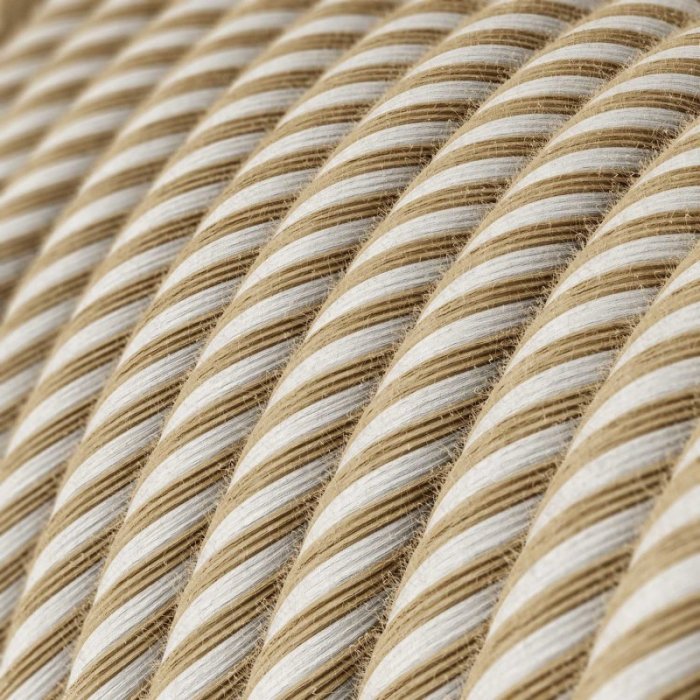 Das gestreifte Stoffkabel 2x0,75 mm mit der Produktbezeichnung Vertigo ERN07 ist für eine feste Installation in 230V Stromnetzen bestimmt. Geeignet ist es insbesondere für dekorative Innenraumleuchten oder Beleuchtungsgruppen, wo seine gestreifte Farbausführung und die präzise Fertigung herausstechen und wo gleichzeitig kein Schutzleiter (PE) benötigt wird. Dank der kupfernen Litzenleiter in runder Form, der Doppelisolierung aus PVC und der präzisen Verarbeitung bietet das Kabel ein hohes Maß an Sicherheit, Flexibilität und eine außerordentliche mechanische Beständigkeit mit einer Tragfähigkeit des Kabels für Pendelleuchten von bis zu 2,25 kg. Die zweifarbige gestreifte Oberfläche mit einer Kombination von Jute und Baumwolle verleiht dem Kabel eine außerordentliche Optik, dank der es nicht nur zu einem funktionalen, sondern auch zu einem ästhetischen Element des Interieurs wird. Verwenden können Sie das gestreifte Kabel 2x0,75 mm ERN07 für die individuelle Fertigung origineller Leuchten oder Beleuchtungsgruppen mit Augenmerk auf das Design und jedes Detail.