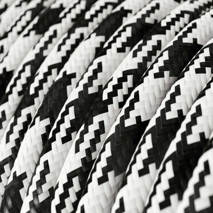 Das gemusterte Textilkabel 3x0,75 mm mit der Produktbezeichnung Houndstooth RP04 ist für eine feste Installation in 230V Stromnetzen bestimmt. Geeignet ist es insbesondere für dekorative Innenraumleuchten oder Beleuchtungsgruppen, wo seine Farbausführung und die präzise Fertigung herausstechen. Dank der kupfernen Litzenleiter in runder Ausführung, der Doppelisolierung aus PVC und der präzisen Verarbeitung bietet das Kabel ein hohes Maß an Sicherheit, Flexibilität und eine außerordentliche mechanische Beständigkeit mit einer Tragfähigkeit des Kabels für Pendelleuchten von bis zu 2,75 kg. Die Oberfläche aus dem Material Rayon (Viskose) verleiht dem Kabel eine außergewöhnliche Optik, dank der es nicht nur zu einem funktionalen, sondern auch einem ästhetischen Element des Interieurs wird. Verwenden können Sie das gemusterte Textilkabel 3x0,75 mm RP04 für die individuelle Fertigung origineller Leuchten oder Beleuchtungsgruppen mit Augenmerk auf das Design und jedes Detail.