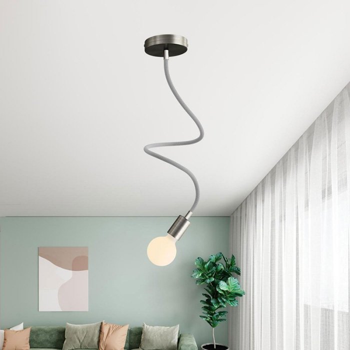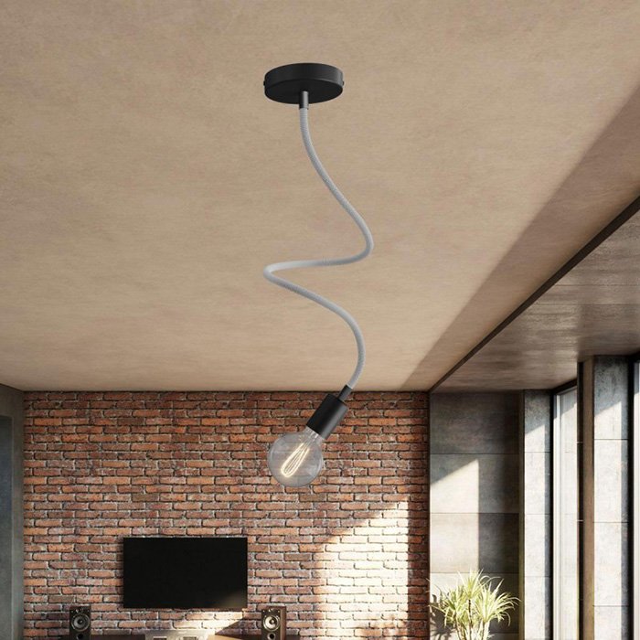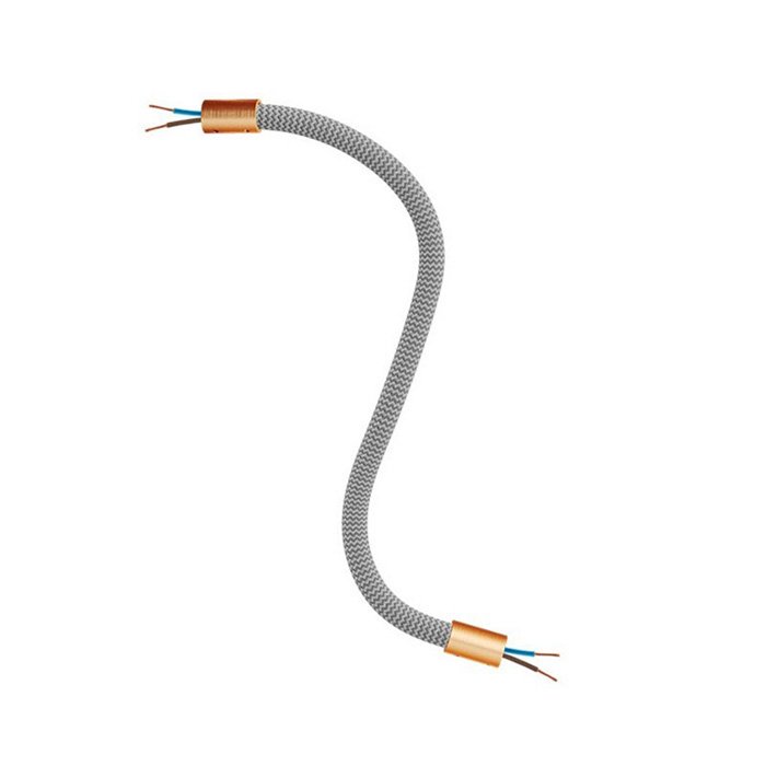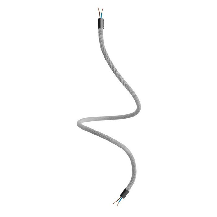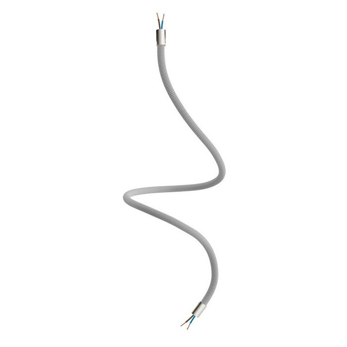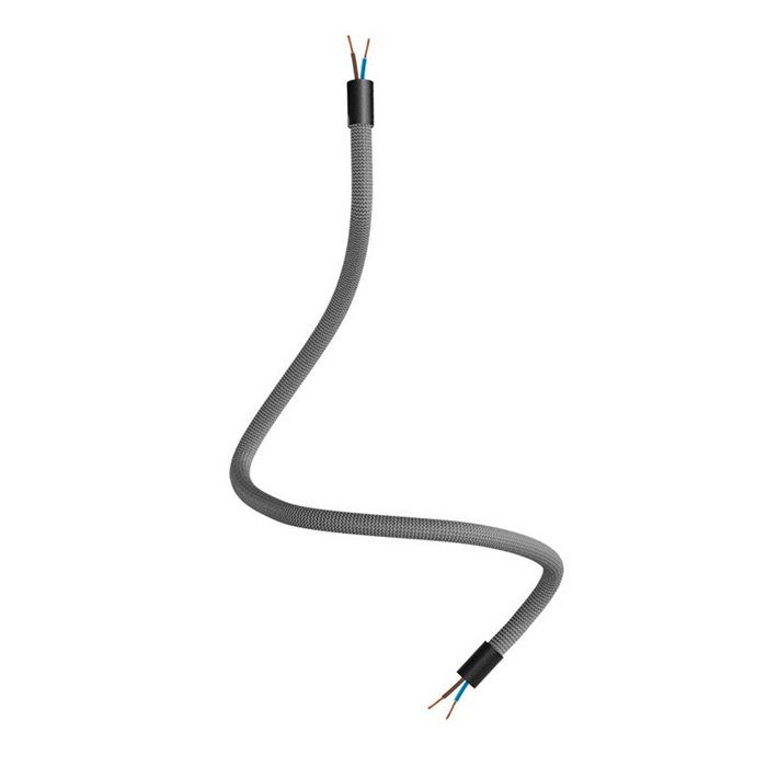 Der titanfarbene Schwanenhals für Lampen und kreative Lichtinstallationen Flex RM75 ist eine hervorragende Wahl für all jene, die originelle Leuchten schaffen oder mit verschiedenen Montagearten von Leuchten experimentieren wollen. Er ermöglicht ein Neigen, Schwenken und Verbiegen und ist an beiden Enden mit einer Gewindehülse M10 ausgestattet. Im Innern befindet sich bereits ein Kabel 2×0,75 mm², das an beiden Enden herausragt, was das Anschließen von Komponenten wie Kabelabdeckungen für Lampen oder Lampenfassungen vereinfacht.