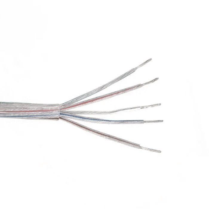 Das 5-adrige transparente Kabel 5x0,75 mm² ist ein verzinnter Kupferlitzenleiter mit einem runden Querschnitt in einer transparenten PVC-Isolierung. Er stellt eine hoch funktionstüchtige und vom Design her saubere Lösung dar, die vor allem für Anwendungen bestimmt ist, wo Wert auf Ästhetik und eine unauffällige Integration einer Kabelleitung in Leuchten gelegt wird. Die einzelnen Adern sind mit unauffälligen Farbstreifen markiert. Das 5-adrige transparente Kabel 5x0,75 mm² kann bei der Fertigung von Designleuchten zusammen mit RGBW LED-Streifen verwendet werden.