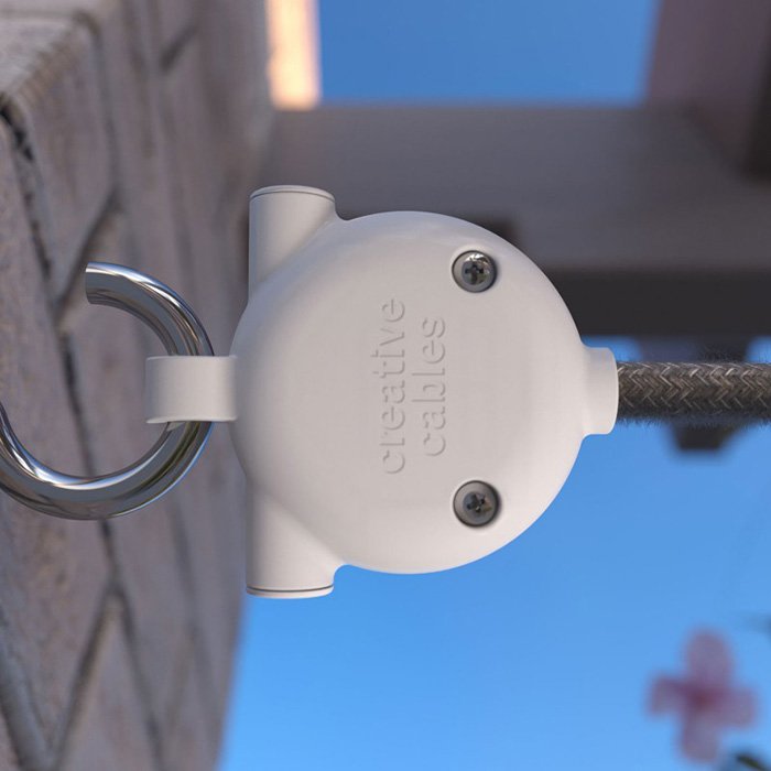 Průchozí venkovní spojka pro textilní kabel EIVA-3 IP65 patří mezi jedinečné a patentované produkty systému EIVA. Stejně jako celý tento systém splňuje průchozí venkovní objímka EIVA stupeň krytí IP65 a je možné ji použít ve venkovních prostorech za všech povětrnostních podmínek. Systém venkovního osvětlení EIVA je navržen společností Creative-Cables a umožní vám osvětlit vaše venkovní prostory, jako jsou zahrady, terasy nebo pergoly, pomocí jedinečných světelných řešení. Průchozí venkovní kabelová spojka s dvojitým vstupem se také skvěle hodí pro výrobu osvětlení připomínající světelný žárovkový řetěz ve vintage nebo retro stylu. Milovníkům designu tato venkovní plastová spojka kabelu nabízí možnost volby z několika pastelových barevných provedení.