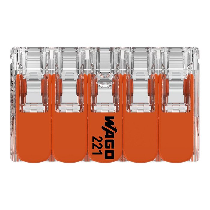 Die Verbindungsklemme WAGO 221-420 10x4mm² ist für das schnelle, zuverlässige und schraubenlose Verbinden von zehn Leitern bestimmt. Sie bietet einen zuverlässigen Kontakt ohne den Bedarf von Werkzeug - es genügt, den Hebel anzuheben, den Leiter einzuschieben und den Hebel wieder runterzuklappen. Das transparente Gehäuse ermöglicht eine einfache Sichtkontrolle, ob der Leiter richtig eingeschoben ist, während der orangefarbene Bedienhebel für ein zuverlässiges Öffnen und Schließen der Klemmstelle sorgt. Die Verbindungsklemme ist für alle Typen von Kupferleitern geeignet: