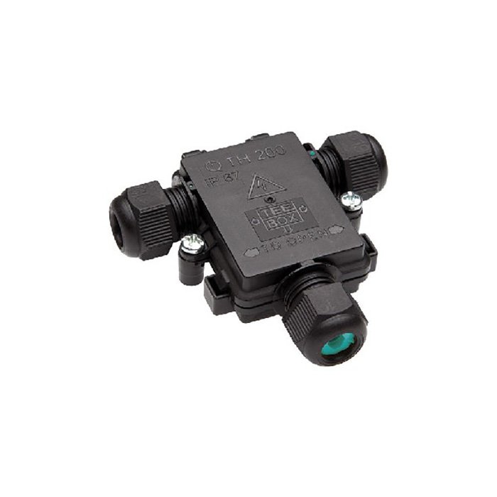 Der wasserdichte Kabelverbinder THB.200.E5 ist ein hoch zuverlässiger T-Verbinder zur Schaffung sicherer und widerstandsfähiger Verbindungen in Elektroinstallationen, die Feuchtigkeit, Wasser oder anspruchsvollen Witterungsbedingungen ausgesetzt sind. Dank der Schutzart IP67 - 5 bar bietet er maximalen Schutz vor Staub und Hochdruckreinigung, was ihn zu einer idealen Lösung für Industrie, Garten und Fassadenbeleuchtungen wie auch LED-Installationen im Außenbereich macht.