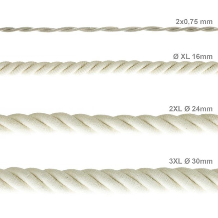 Baumwolle ist eine Naturfaser, die aus den Früchten der Baumwollpflanze gewonnen wird. Sie besteht überwiegend (zu ca. 90–95 %) aus Zellulose, was ihr Weichheit und Atmungsaktivität verleiht. Das weiße Baumwoll-Seilkabel 3x0,75 mm CottonMatt-16 besticht durch die Verwendung von nachhaltigem Material, durch Beständigkeit und eine authentische natürliche Optik, die nicht nur auf den ersten Blick, sondern auch durch ihre Haptik beeindruckt: