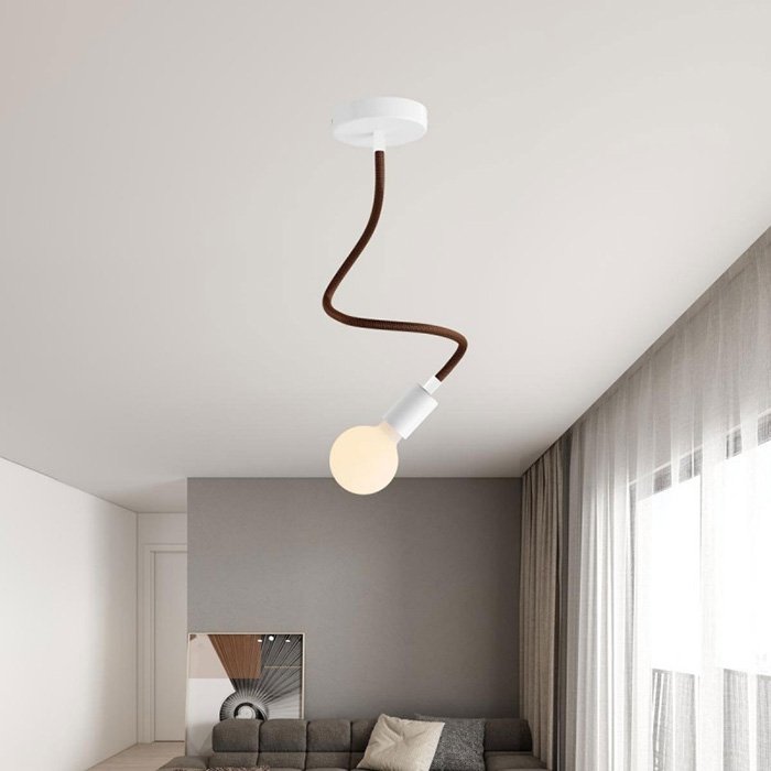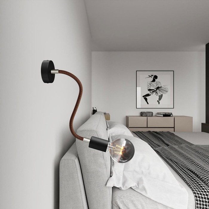 Der whiskey-schwarze Schwanenhals für Lampen und kreative Lichtinstallationen Flex RZ22 ist eine hervorragende Wahl für all jene, die originelle Leuchten schaffen oder mit verschiedenen Montagearten von Leuchten experimentieren wollen. Er ermöglicht ein Neigen, Schwenken und Verbiegen und ist an beiden Enden mit einer Gewindehülse M10 ausgestattet. Im Innern befindet sich bereits ein Kabel 2×0,75 mm², das an beiden Enden herausragt, was das Anschließen von Komponenten wie Kabelabdeckungen für Lampen oder Lampenfassungen vereinfacht.